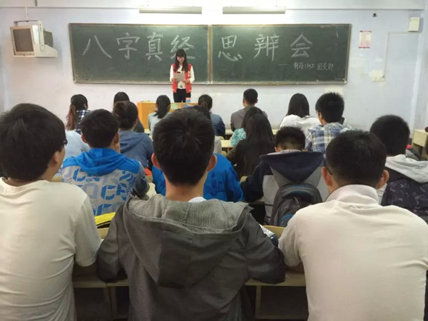 在习近平总书记与北京大学师生座谈会上的讲话发表一周年之际,为进一步引领带动广大青年学生认知、践行习近平总书记提出的“勤学、修德、明辨、笃实”的重要要求,制药1302团支部积极贯彻习近平讲话和校团委精神,在“五四”青年节期间开展“如何练好习大大传授的‘八字真经’”思辨会。思辨会由全体支部成员参与。