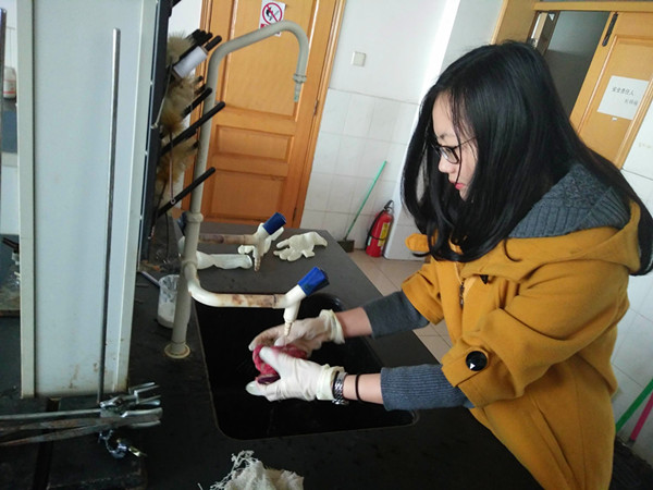 进入实验室后,同学们根据分工,分别各自拿起抹布、扫把、垃圾袋等工具开始进行卫生清扫工作。女同学主要负责擦桌子、整理实验台,男同学主要负责擦窗台、拖地,大家相互协调配合将原来灰尘扑扑的实验室打扫的亮丽如新。在打扫过程中,由于在冬末春初,清洗抹布的水还是比较凉,不怕凉的颜文学同学帮助女同学们清洗抹布,展现了团结互助的优良品质。