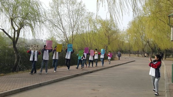 为了激励更多的人加入“地球一小时”活动。3月29日下午,由13级化学工程与工艺专业二班选派的校园宣传小组在农大校园里举行“熄灯一小时,环保青岛市”校园宣讲活动。