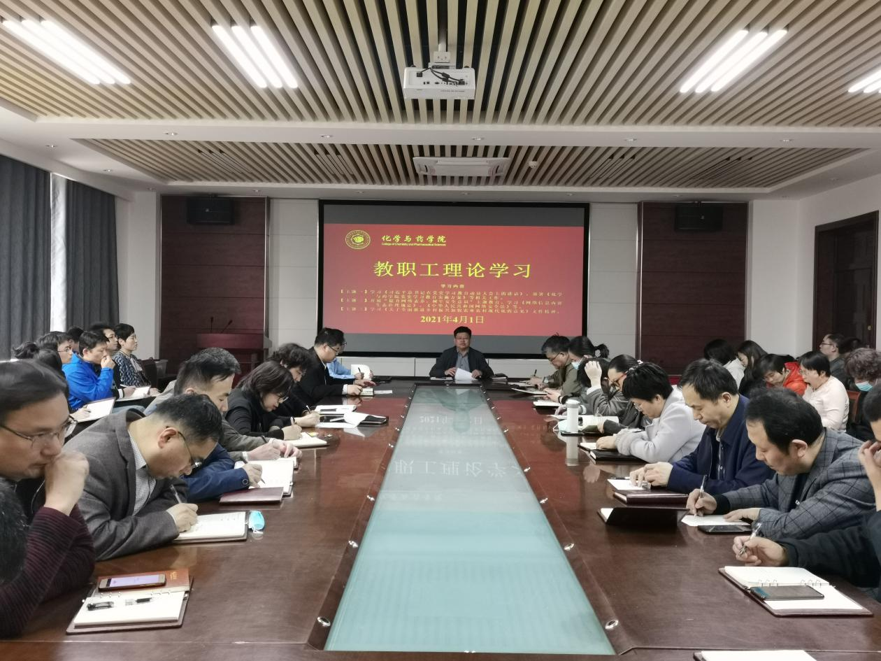 4月1日,青岛农业大学化学与药学院于化学楼会议室开展教职工理论学习,学院党委书记王进国、院长龚良玉、党委副书记史雪辉、专职组织员吕海涛出席会议,全体教职工参加。