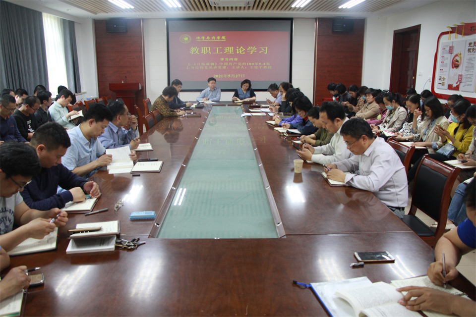 5月27日,青岛农业大学化学与药学院于化学楼会议室开展教职工理论学习会议,学院党委书记王进国主持,院长龚良玉、党委副书记史雪辉、党委专职组织员吕海涛、副院长郝双红出席,全体教职工参加。