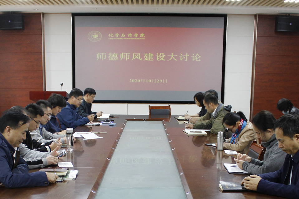 10月29日,青岛农业大学化学与药学院于化学楼会议室举行师德师风建设大讨论活动,活动由学院党委书记王进国主持,院长龚良玉,党委副书记、副院长史雪辉,副院长吕海涛及学院全体教职工参加。