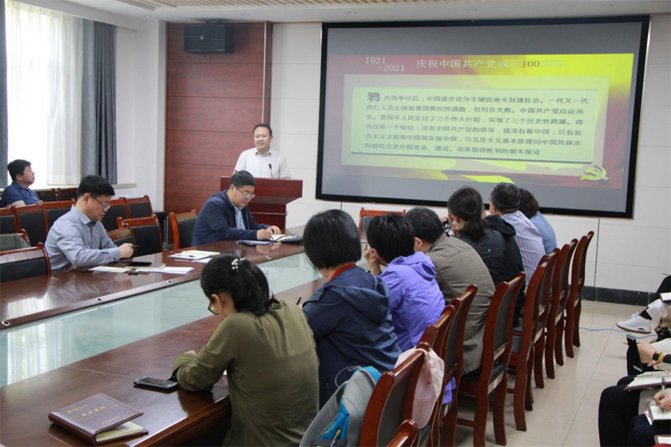 5月27日,青岛农业大学化学与药学院于化学楼会议室开展党史学习教育系列党课,教工党员王进平教授以“学习党史,不忘初心,牢记使命”为主题给与会老师呈现了一堂精彩的党课。会议由学院党委书记王进国主持,院长龚良玉、党委副书记史雪辉、党委专职组织员吕海涛、副院长郝双红出席,全体教职工参加。
