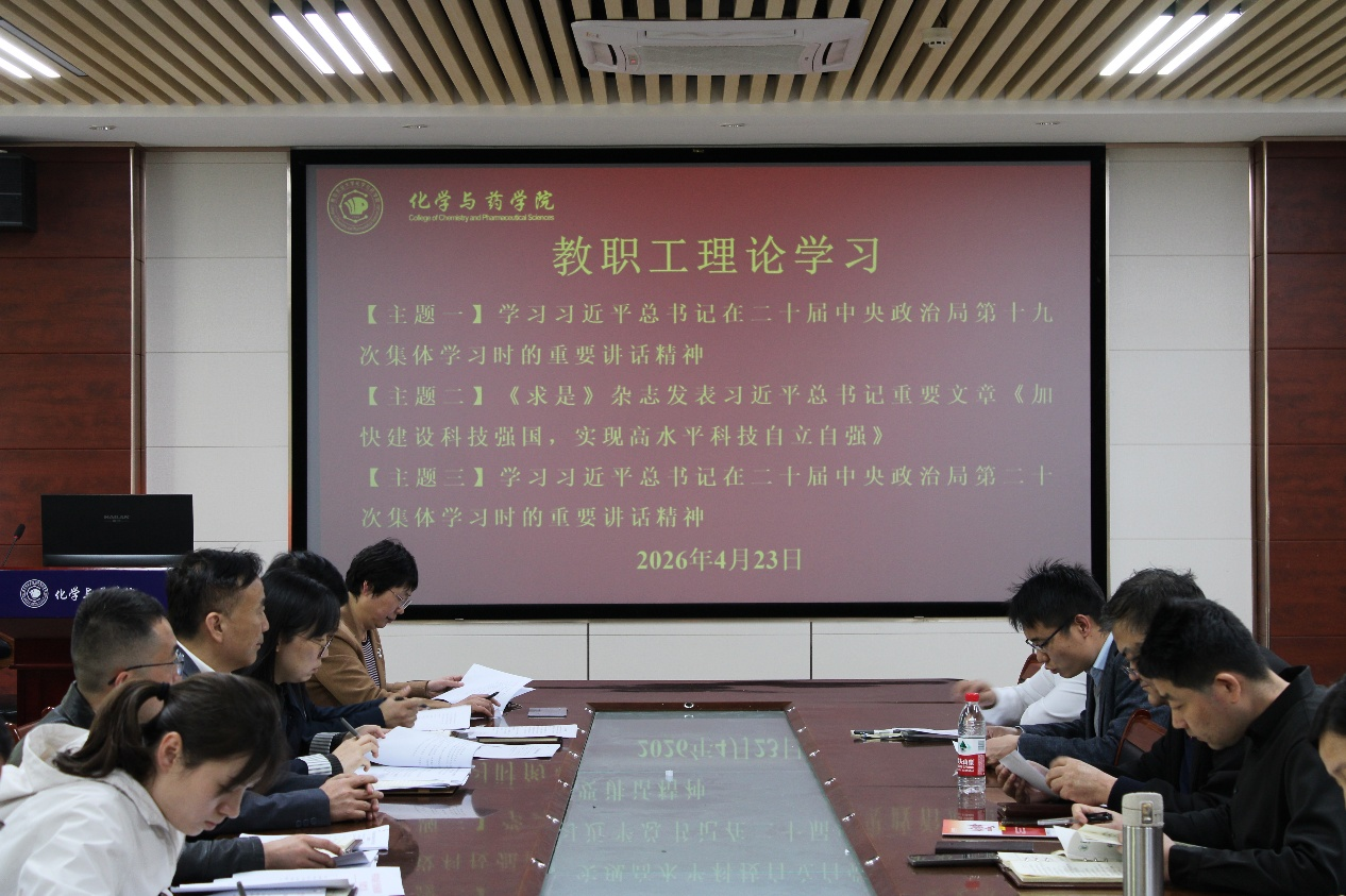 4月23日,化学与药学院于化学楼会议室开展教职工理论学习。会议由学院党委副书记、副院长刘兴华主持,全体教职工参加。