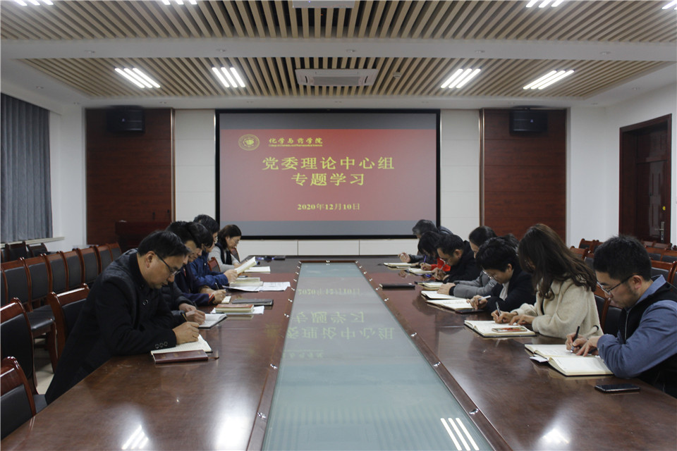 12月10日,化学与药学院于学院会议室召开党委理论中心组扩大会议,党委理论学习中心组成员、两办成员以及各党支部书记进行集体学习。
