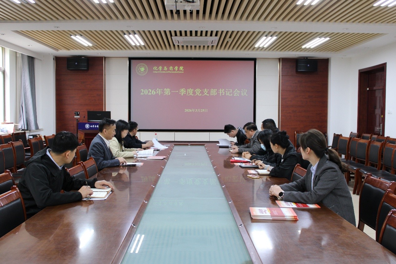 3月25日,化学与药学院在化学楼会议室召开2026年第一季度党支部书记会议,会议由学院党委副书记、副院长刘兴华主持,各党支部书记参会。