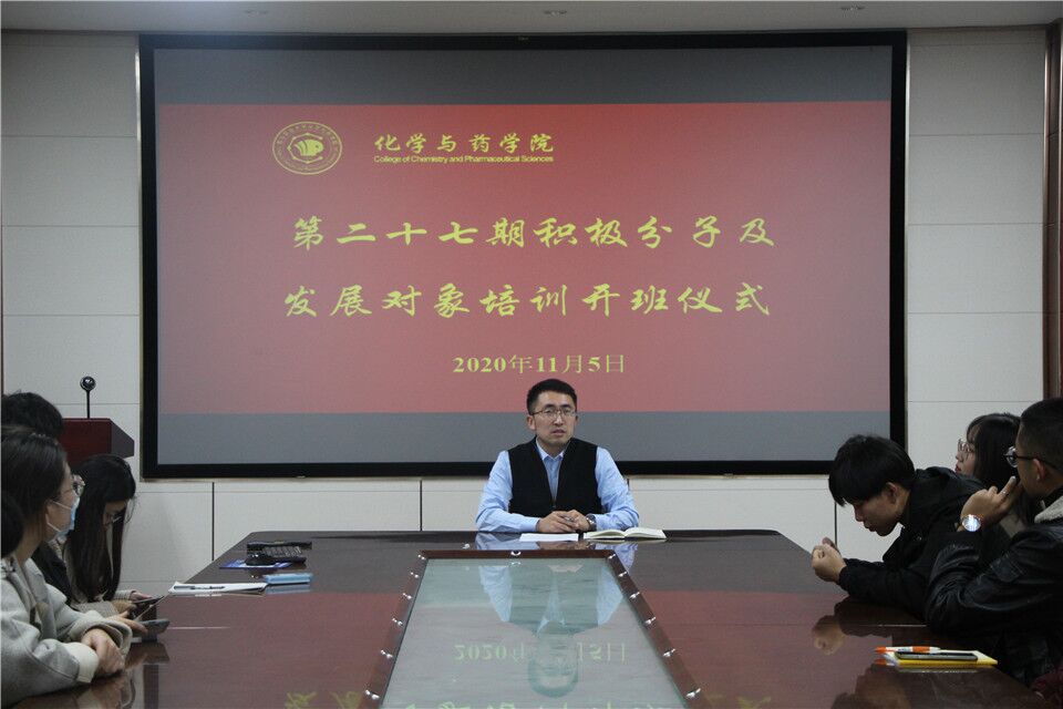 11月5日,青岛农业大学化学与药学院于化学楼会议室举行第二十七期积极分子及发展对象培训开班仪式,仪式由正科级辅导员江守林主持,学院二十七期积极分子及2020年下半年党员发展对象参加。