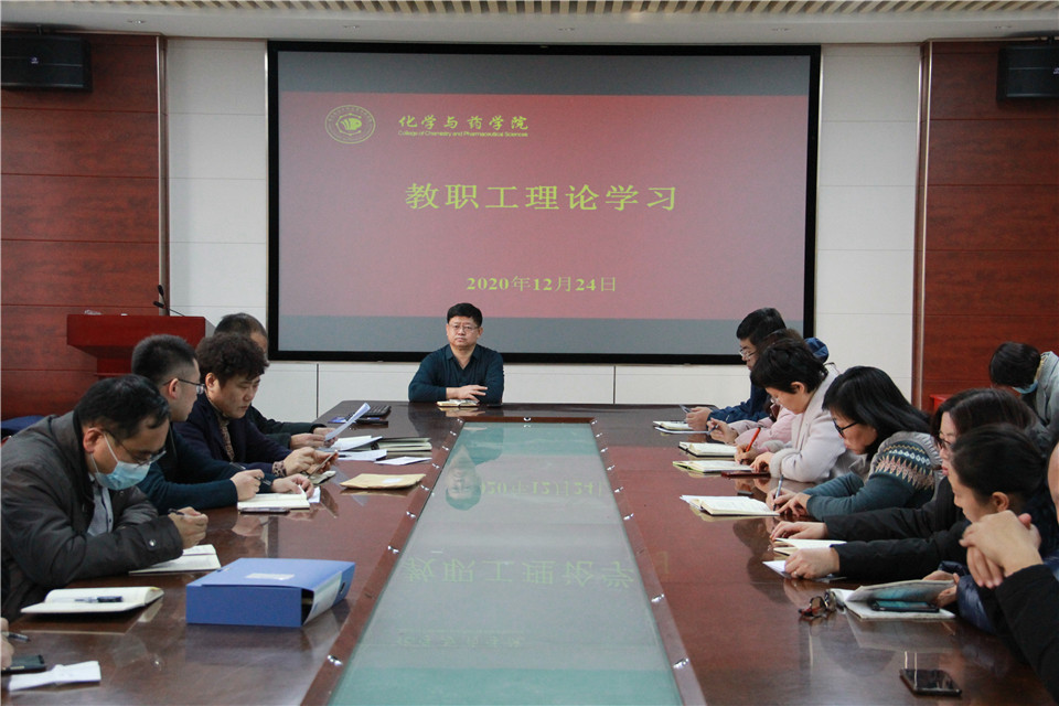 12月24日,青岛农业大学化学与药学院于化学楼会议室组织教职工集中理论学习,专题开展了期末考务工作培训和假期疫情防控知识培训。学院党委书记王进国、党委副书记史雪辉、副院长郝双红出席会议,全体教职工参加。
