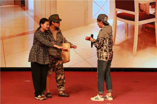“铁柱,这是你最爱吃的鸡蛋灌饼。”心理情景剧《感恩》讲述虚荣心膨胀的大学生铁柱在失明母亲及穷困父亲亲情探望下痛改前非的故事,带大家重温父母当年爱,给大家带来一场心灵洗涤;情景剧《白雪公主》用搞笑的情节、精彩的表演舒缓现场气氛,为毕业生们带来一场视觉盛宴。