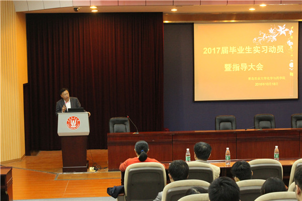 10月18日,化学与药学院于信息楼报告厅召开2017届毕业生就业动员暨指导大会。会议特邀中达农业科技公司总经理栾守业、思途教育市场部总监郭丰强作为嘉宾指导毕业生就业。会议由院团委书记王海霞主持,学院全体在校毕业生参与。