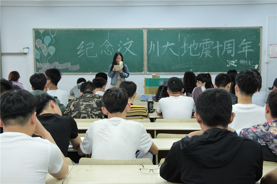 本次主题教育活动由各班班长、团支部书记主持,通过讲述十年前抗震救灾感人故事的方式带领同学们共同缅怀在地震中不幸逝去的人们,同时,通过发表对抗震精神的理解与看法向在场同学表达抗震救灾的精神观念与实质所在,倡导同学们积极学习抗震中永不放弃的胆量与常怀希望的乐观精神,并将这种精神持续发扬,落于实处。