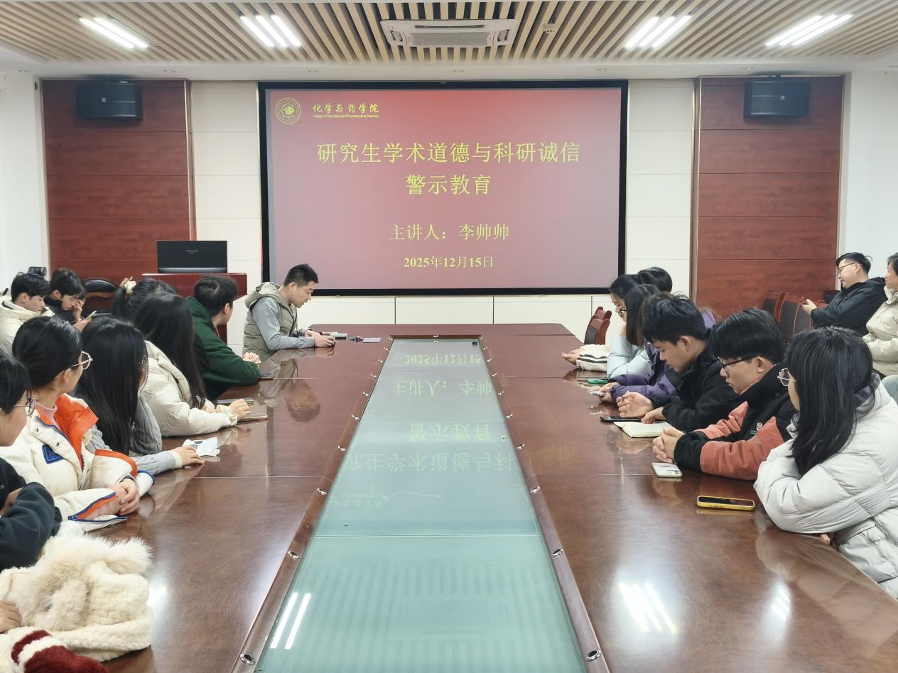 为深入贯彻落实国家关于加强科研诚信建设的部署要求,进一步强化学术道德规范意识、筑牢科研诚信根基,12月15日,化学与药学院于化学楼会议室组织召开研究生学术道德与科研诚信警示教育专题会议。会议由学院研究生分管领导李帅帅主讲,全体研究生参会。