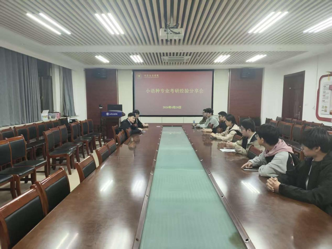 4月20日,化学与药学院于化学楼会议室召开小语种考研经验分享会,会议由辅导员李鑫主持,学生代表积极参会。会议邀请药学2202班刘烨为主讲人,目前已拟录取至哈尔滨工业大学,外语语种为日语。