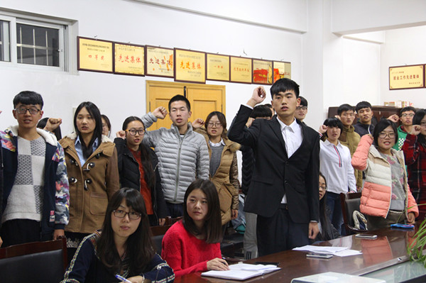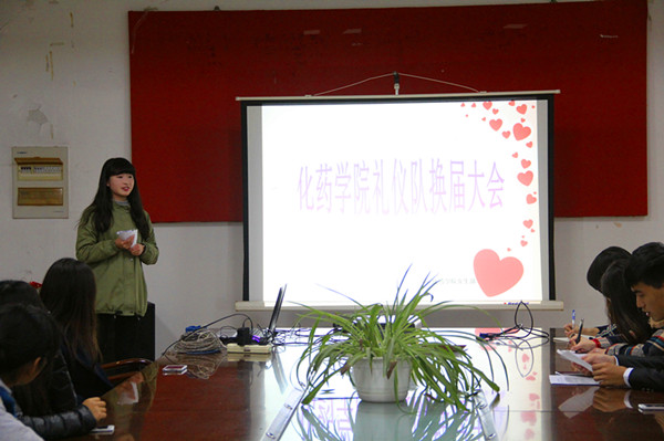 11月20日,化学与药学院礼仪队首届换届大会于学院会议室召开。会上14、15级礼仪队双方进行握手仪式完成交接,15级进行礼仪宣誓。