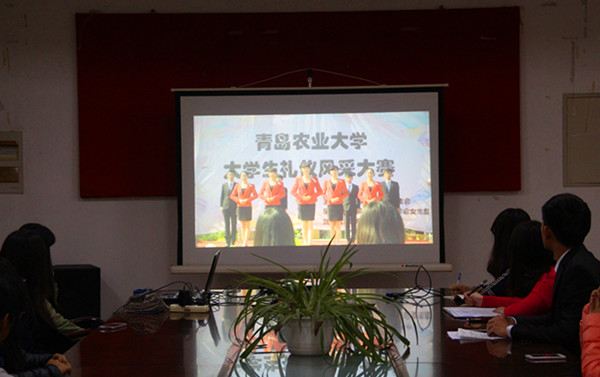 会上,大家分别观看15级在学院前期举办“新新女子大学堂”中的第一次礼仪表演和14级在今年五月份的“青岛农业大学大学生礼仪风采大赛”中的礼仪表演。15级礼仪队队员在对比中总结不足,认真学习。
