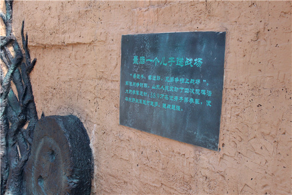 来到孟良崮战役遗址,眼前的雕塑生动细致地记录了革命时期的生活状况。“最后一口饭做军粮,最后一尺布做军衣,最后一个儿子送战场”,当地导游告诉我们,“孟良崮战役,就是沂蒙儿女用小推车推出来的胜利,沂蒙儿女爱党拥党,用尽力量去支援共产党,奉献生命为革命。”