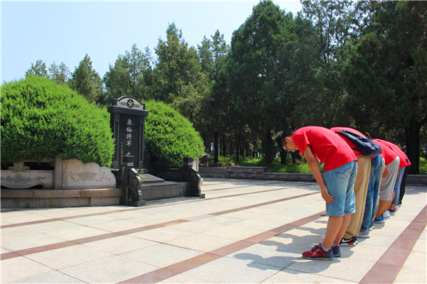 墓地正中是粟裕将军骨灰撒放处。实践队来到粟裕将军墓前,集体向粟裕将军墓鞠躬,来缅怀先辈,致敬革命红色精神。