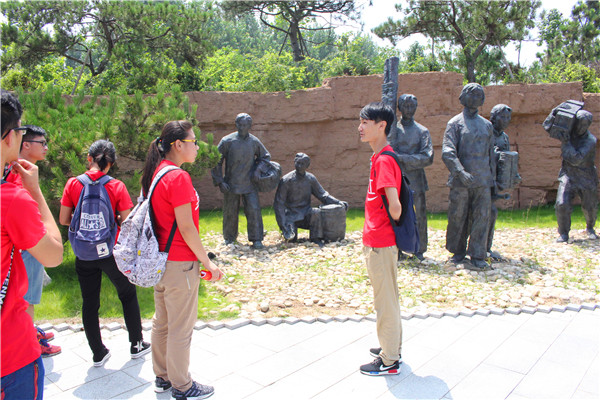 上午九点整,实践队来到山峦簇集、群岗荟萃的孟良崮。踏入这个神圣的地方,实践队队员就被雄伟石雕所深深震撼——陈毅、粟裕。当看到雕像底部陈毅元帅题词写的苍劲有力的“英雄孟良崮”五个大字,队员们内心多了几分敬重,添了些许感伤。“革命先烈的精神永在,回味历史,感悟今朝,我们的幸福生活是他们用生命铺成的革命道路,我们晚辈欠他们一份感激,一个拥抱,但是我们可以传承革命精神,完成中国新时期使命!”队长刘彩说道。
