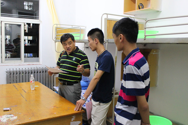 刚走进新生宿舍看着孩子们一张张灿烂的笑脸,应化1501班的班主任徐鲁斌顿时乐了起来。每到一个宿舍,他都会向学生们询问在新环境下的适应情况,同时他还向新生们说到:“对于大学生活来说,宿舍就是一个温暖的家,宿舍的每一位成员都是你最亲的亲人,所以大家要相互帮助,相互学习,同时应该多多注意身体,积极锻炼。”对于新宿舍可能带来的异味问题,徐鲁斌特意嘱咐大家:要勤开窗,多通风,如果存在某些健康问题时,千万不要硬挺,要及时上校医院就医。临走前,他还向新生们传达了学院领导对新生的关怀和慰问,他希望新生们尽快适应大学生活,了解大学新的学习制度,在大学四年为自己的人生写下最华美的篇章。