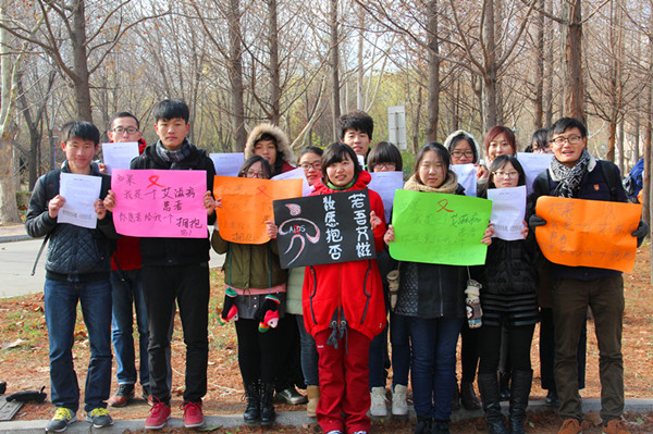 寒冷的天气使得路上同学们的脚步变的匆忙起来,但是面对“假如我是艾滋病和患者,你愿意给我一个拥抱吗?”的问题,他们中的大多数还是选择停下脚步,献出自己的怀抱,并积极为艾滋病患者留言,送上自己美好的祝福。“今天的天气太冷了,原本觉得活动开展会不顺利,但是大家都很配合,愿意献出拥抱,以一个正确的态度来看待这个问题,这是大家给予艾滋病患者的承诺!。”张星星拿着留言条说道。