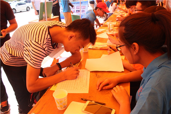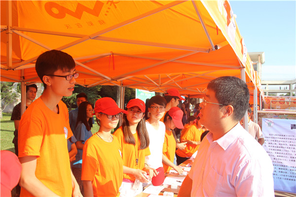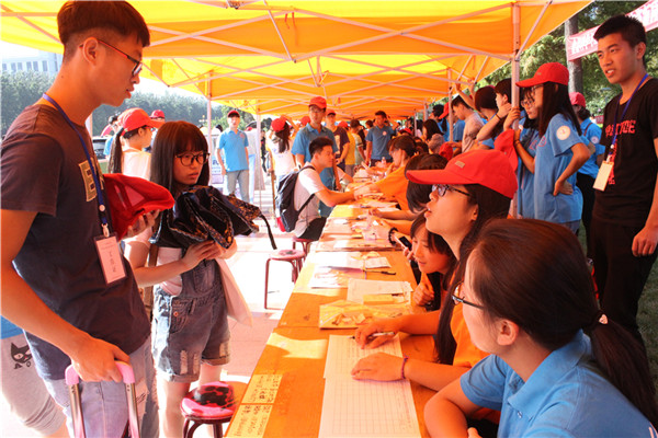 “流动的会徽”给新生仔细讲解报到流程及注意事项