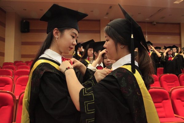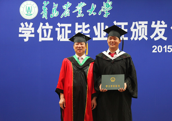 忐忑、激动、兴奋、甜蜜,穿袍、正冠、悬穗、合影……偌大的学术会馆报告厅处处流动着幸福的微笑与收获的喜悦。6月23—25日,青岛农业大学举行学位证毕业证颁发仪式,校学位评定委员会主席、校长宋希云在这里为6326名圆满完成学业的2015届毕业生一一颁发学位证毕业证并合影留念,为大家送去母校的深情祝福。广大毕业生在同学和老师的注视下,为自己的学业划上完美的句点,奔向新的征程。