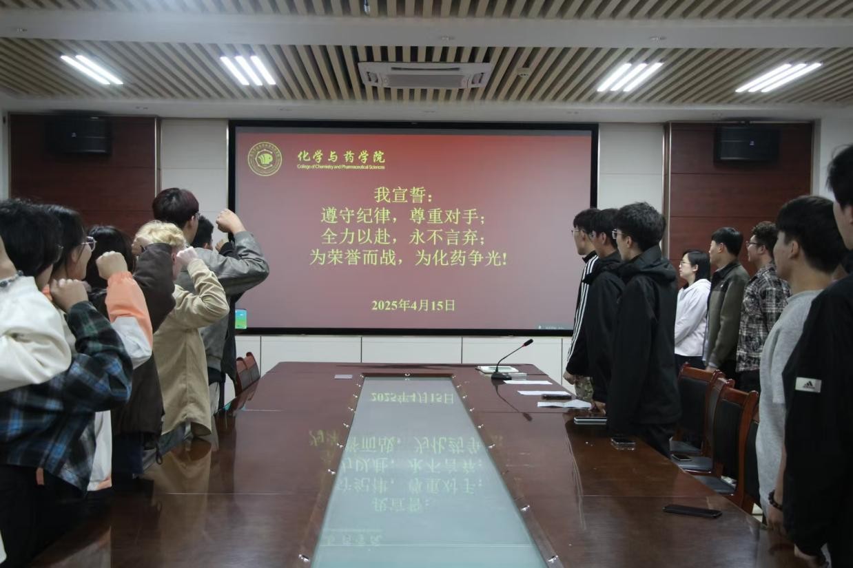 为提升学院运动员信心,增强团队凝聚力,4月15日,学院于化学楼207会议室举办化学与药学院运动会出征仪式暨运动员动员会,辅导员李鑫主持,学院团委书记赵莹出席,裁判员和运动员参会。