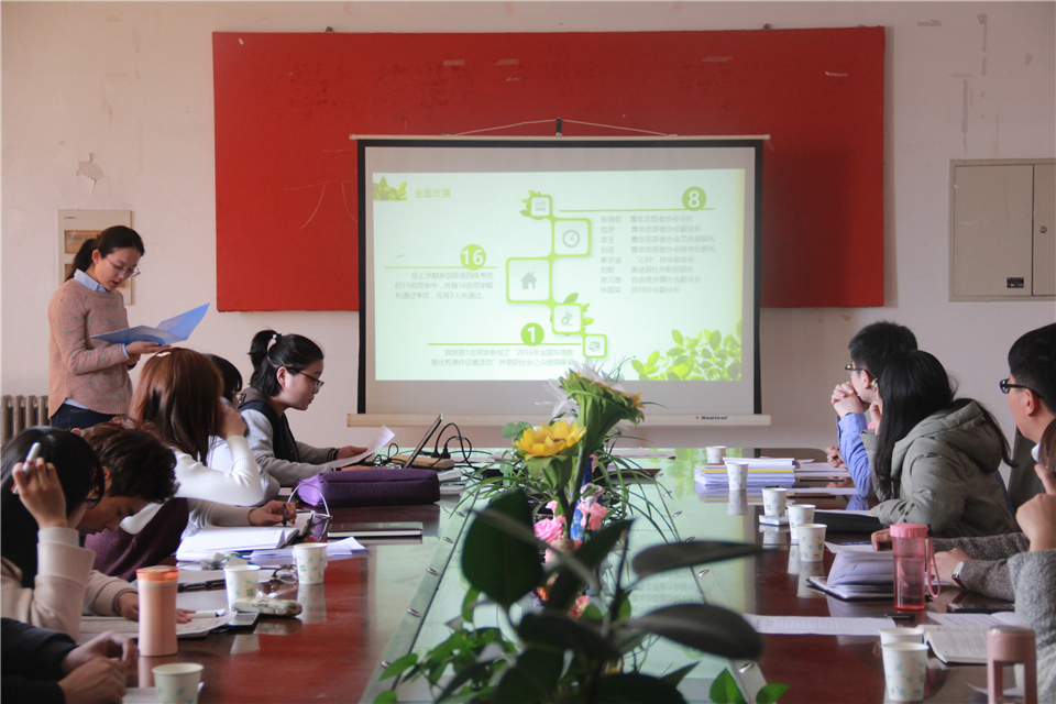 3月6日,化学与药学院于学院会议室举行班级考核PPT汇报交流汇报会,学院辅导员田保玲、陈照志出席会议,15级、16级各班班长与团支部书记参加。