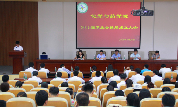 为确保学院工作落到实处,为学院学生会注入新鲜的活力,8月26日,化学与药学院2015届学生会换届大会在学术会馆第二报告厅顺利举行。学院党委书记王智、党委副书记史雪辉、团委书记王海霞、团委副书记杨冬冬、辅导员田保玲出席会议,学院2014届学生会各部部长和2015届学生会全体成员参加会议,会议由杨冬冬主持。