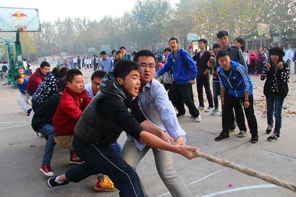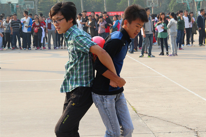 拔河比赛中,参赛同学劲往一处使,充分体现了“团结就是力量”的重要性;在“两人三足”活动中,十位同学齐心协力,十个人拧成一根绳,如同一个巨人,坚不可摧,强大的团体共同赢得了最后的胜利;在“炸弹背靠背”中也感受到了不一样的快乐,欢乐之中加深了同学间的友谊。