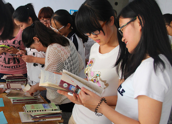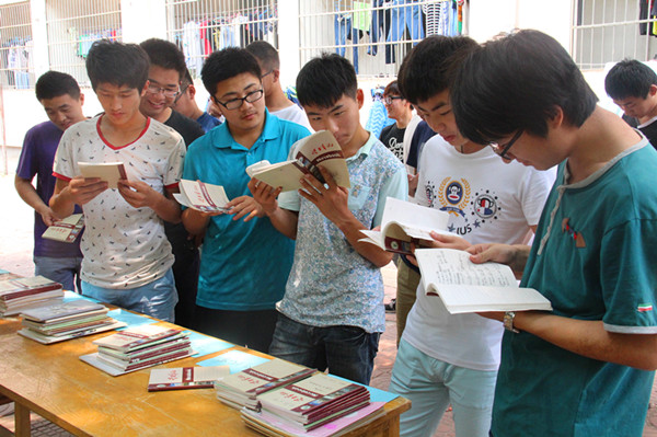 笔记展桌上,各学科的笔记涵盖内容齐全,“NaI溶于丙酮中,而Nacl、NaBr不溶于丙酮中……”“That man is rishest whose pleasures are cheapest……”一本本笔记记录着密密麻麻的公式和知识点,包括用红笔明显标记的重点。很多学生聚拢在展桌前,翻看着毕业生们的笔记,细细品味,相互交流,都希望在这最短的时间内获取最大的收益,同时感受着笔记中的青春努力奋斗的故事,并连连感叹:“原来学霸是这样炼成的!”