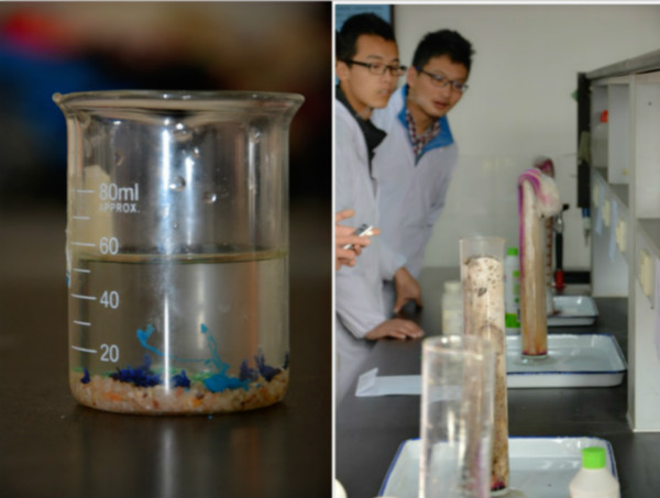此次大赛吸引了包括化学与药学院,资源与环境学院,动科学院,食品学院和生科学院等在内的436位参赛选手,参赛人数大大超过往届。本次竞赛主要内容为无机化学、分析化学、《基础化学实验》课程中涵盖的基础知识、实验原理及实验操作,包括魔棒点冰花、水中花园、超级烟火、大象牙膏等八个实验。实验采取一人操作、一人讲述实验原理的合作模式,以培养同学们动手操作能力和团队协作能力。比赛过程中,参赛选手将每一个环节做精做细,能够正确使用仪器,按照实验步骤规范操作,严格控制药品使用量,认真观察并记录实验现象,注意实验安全;选手默契配合、熟练地操作及对实验原理的深入理解博得老师的认可。蓝白黄绿的树状“花草”、“冰花”绽放蓝光、碘酒“深蓝色-白色”循环变色等实验现象精彩无比,演绎了化学反应的神奇,展示化药独特的风采。监考老师对选手们的表现和实验结果纷纷点头,赞许称奇。