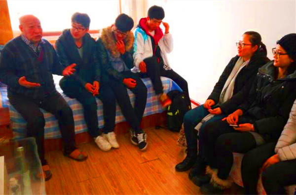 在与老人交谈时,老人们讲述了改革开放前后的个人生活经历,并嘱托同学们:“今天的幸福的来之不易,年轻人就一定要努力学习,为国家做贡献啊。”同学们也讲述了自己在学校的一些趣事与学校的一些发展,让老人了解当代大学生的生活与个性。屋外寒风凛凛,屋内却暖意融融。活动最终在大家的欢声笑语中结束。