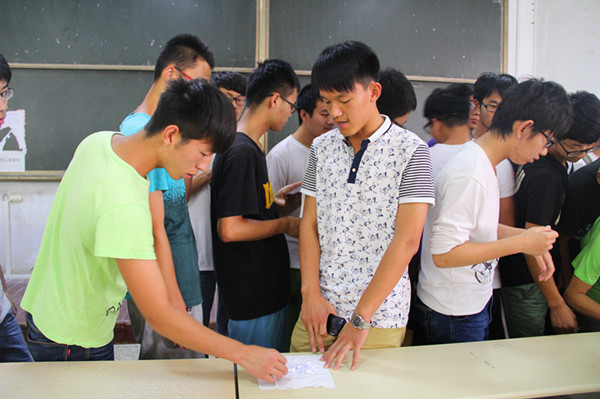 动员会开始,两院报名同学在化药学院学生会体育部干事马彬彬的指导下进行抽签并登记,以此为凭分小组并决定比赛顺序。