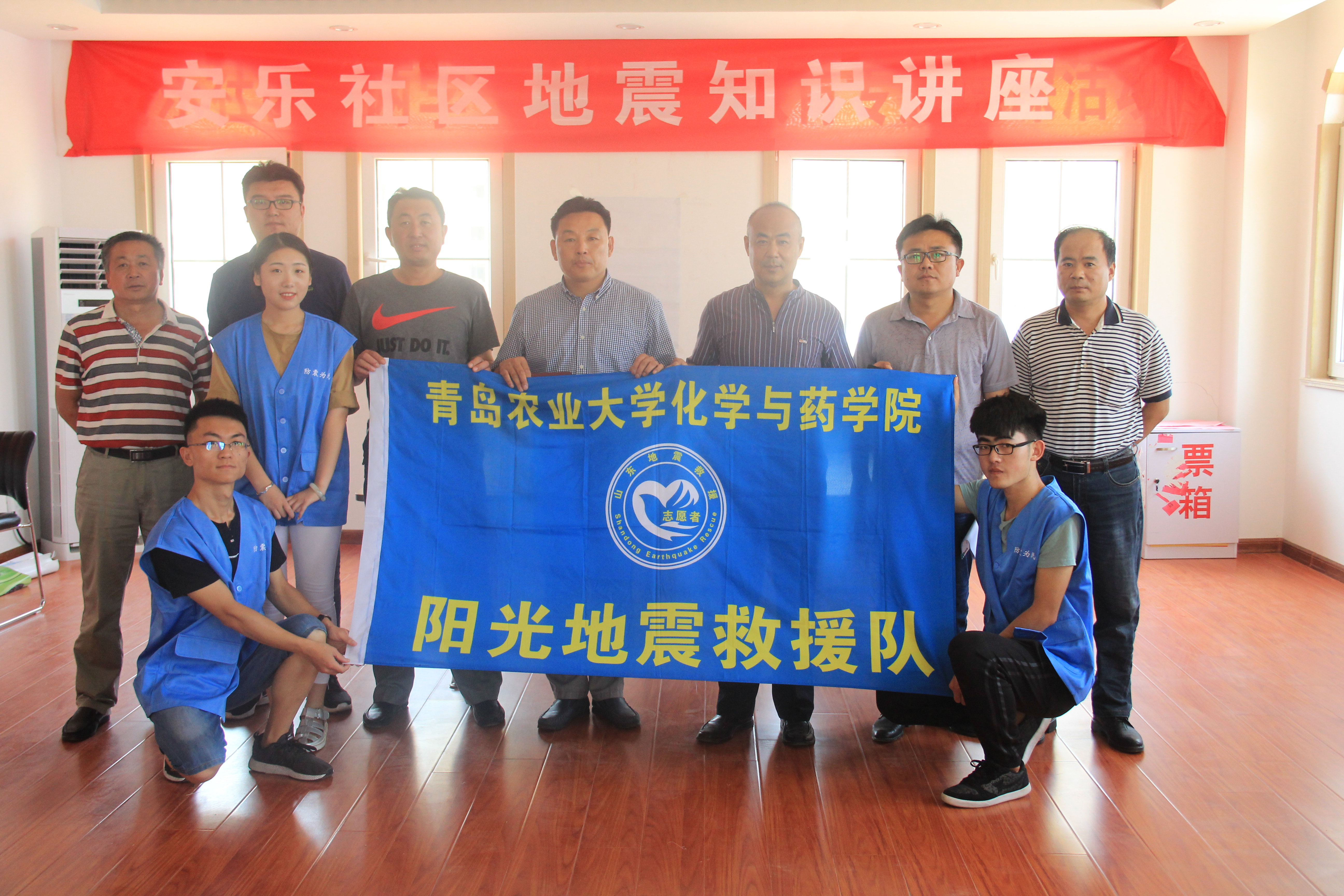 6月27日,青岛农业大学化学与药学院阳光地震救援队赴城阳区安乐社区进行知识宣讲,为城阳区安乐社区居民科普地震知识、讲解急救知识,青岛市城阳区地震局局长纪伟仕,安乐社区主任曲勇、安乐社区两委成员周宗乐参加本次宣讲。