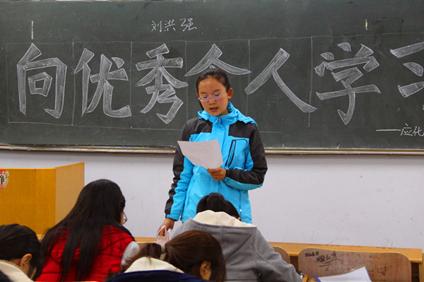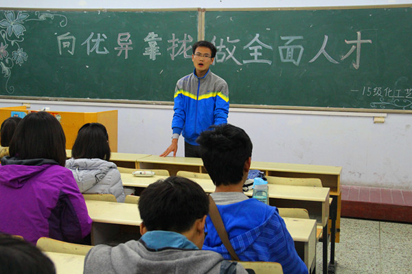 本次政治学习分为讲述优秀人物事迹、学生互相分享经验两个部分。化工艺1501团支书孙晓琪向同学们介绍了化药学院“十佳大学生”刘洪强的一些事迹与荣誉,号召同学向刘洪强学习,努力拼搏,从各方面完善自己,争做优秀大学生。活动中,班级同学刘存根据自己在学习高等数学过程中的经历,总结了学习方法:一是要主动适应老师的讲课方式,提高课堂效率;二是要提前预习,紧跟老师的步伐;三是要端正学习态度,控制自己上课关掉手机。他说道:“在我看来,身为学生要有较强的自控力,学习的时间一定要保证高效率的学习,遇到不懂的地方要尽快攻破,养成自主学习的好习惯。”