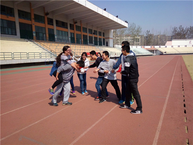 14级制药专业的4个班级联合举办专业趣味运动会,开展男女混合篮球赛、跳绳、两人三足等团体活动,增进专业之间的凝聚力。