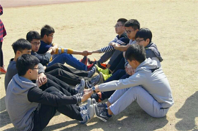 功材1502班开展“接手环”游戏,锻炼班级同学的团结和默契。
