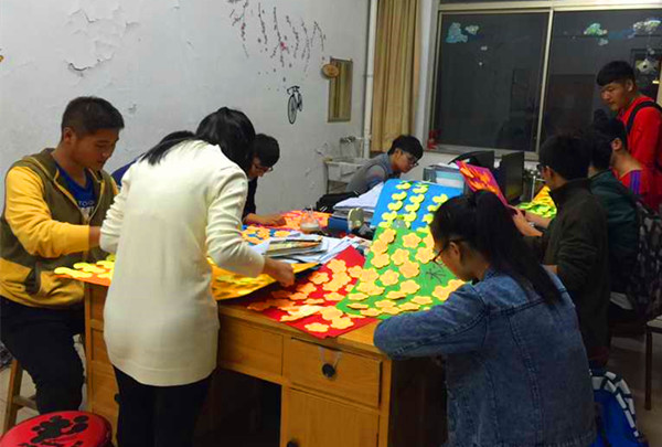 心理发展部成员将事先准备好的便利贴发放给15级新生,由她们写下新学期的感受,并注上自己的联系方式,粘贴在图画卡纸上。