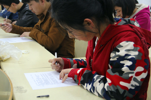 竞赛前,张刚对参赛选手们强调:“关于社会主义核心价值观是一个严肃的话题,大家必须实事求是,杜绝作弊。”选手们拿到卷子,认真的思考后开始仔细答题。本次竞赛的内容包括:《关于培育和践行社会主义核心价值观的意见》、党的群众路线教育实践活动基本知识、习近平总书记十八大以来的重要讲话等方面。同学们在前期的准备过程和竞赛过程中都深刻了解了社会主义核心价值观的内容与含义,并将此内涵谨记在心里,践行于实际。