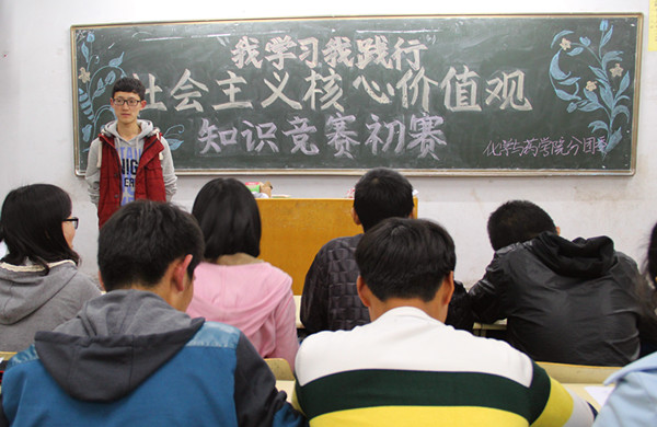 4月16日,化学与药学院分团委于教学区进行本学院竞赛初赛。本次竞赛由化药学院学生会主席丁泽凯,副主席邵晓艳、张刚做监考员,每个班级选出数个代表参加竞赛。竞赛以试卷的形式考察学生对社会主义核心价值观知识的了解。
