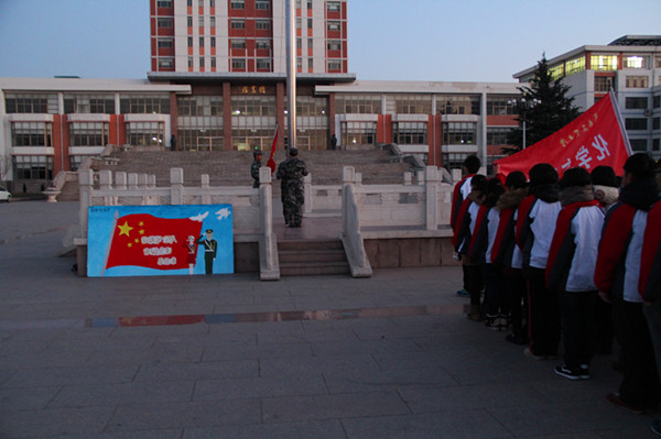 升旗暨志愿者活动启动仪式在国旗护卫队铿将有力的脚步声中开始,英姿飒爽的国旗护卫队成员正步走向国旗台,伴随着慷慨激昂的国歌,鲜艳的五星红旗冉冉升起。
