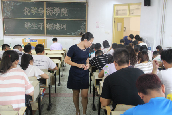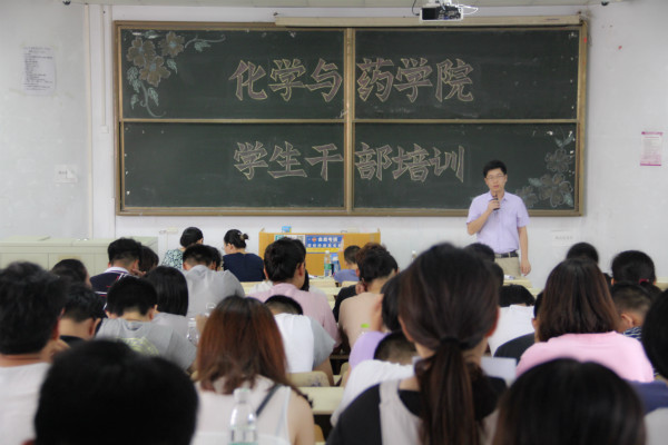 8月21日,化学与药学院2016年暑期学生干部培训会于教学区召开,会议总结了学院上学年学生工作情况,并就新学期学生工作进行安排部署。院团委书记王海霞、正科级辅导员田保玲、新任辅导员陈照志出席,各班班长、书记以及学生会全体成员与会。