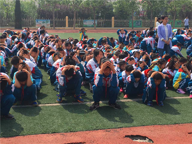 活动开始前,锦绣小学开展防震演练活动,团队队员全程参与安排,提前划分安全区域、分配逃生路线,警报一响,学生们在老师的安排下井然有序撤离。