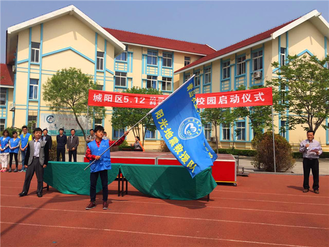 “城阳区防震减灾科普知识进校园”仪式启动,化药学院团委副书记杨冬冬老师授旗于队长刘先聪,队员们表示将坚定不移的完成每一场“防震减灾”宣讲和志愿活动,本着“奉献,互助,友爱,进步”的志愿者精神为创建安全、文明、和谐的社会做贡献。