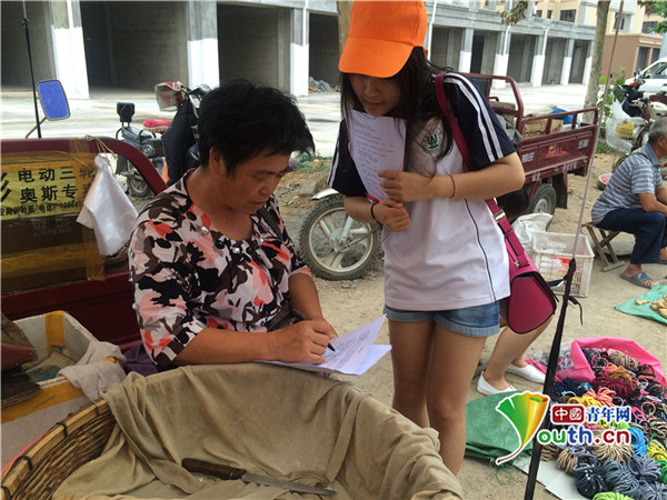 队员们的狼狈与干劲引起了村民们,当了解到队员们调研环保意识、宣传环保的来意后,村民们热情地配合队员们的调查,填写调查问卷并向实践队介绍村里环保情况。