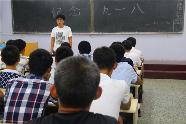 9月20日,化学与药学院于教学区开展“纪念九一八”政治学习活动,2014级、2015级全体学生参加。