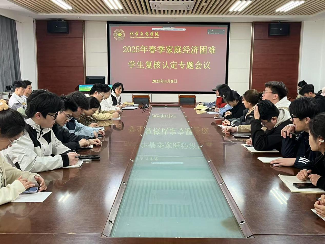 为全面落实国家和学校资助政策,切实做好家庭经济困难学生精准帮扶工作,化学与药学院于2025年4月9日在化学楼207会议室召开2025年春季家庭经济困难学生复核认定专题会议。会议由辅导员黄海红主持,21-24级全体班长书记参加。