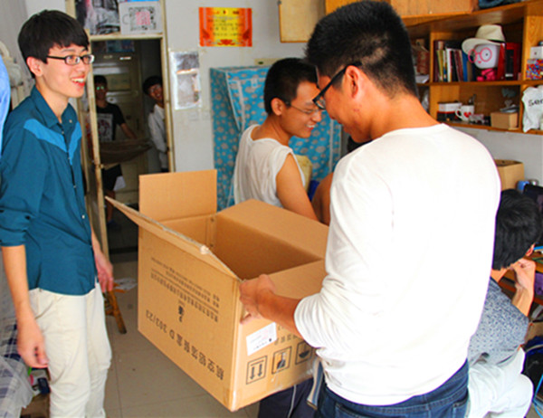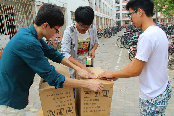 活动前,生活卫生部各成员进行了明确分工,将收集已久的废旧纸盒进行了整理,并逐个撑开重新封上胶带。惠民负责记录纸盒数量及要分发的宿舍,他说到:“密封的时候一定要仔细,我们赠送的不仅是盒子,更是爱心。”整理完毕后,各成员在学生会生活卫生部部长潘晓华的带领下一起将纸盒送到各个宿舍。当他们把纸盒送到学生们手中并收获一声感谢的时候,爱心,也在不知不觉中传递下去了。