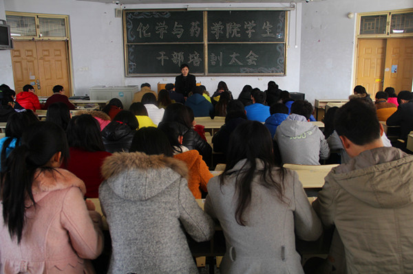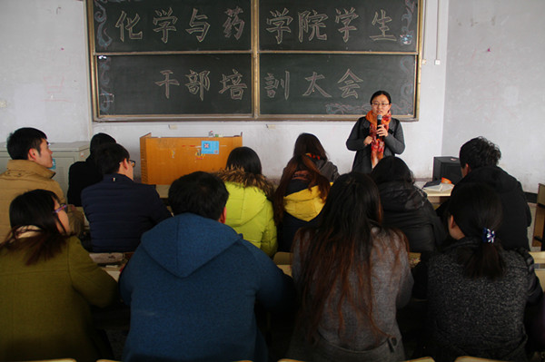 3月8日,化学与药学院2015年寒假学生干部培训会圆满启动。学院团委书记王海霞、副书记杨冬冬和辅导员田保玲出席会议。本次会议旨在在学期开始,提高学生会各部门主要学生干部、班长书记的开展学生服务工作的理论水平和工作能力,调动广大学生干部的主观能动性,同时,传达2015年学生工作要点和共青团工作要点,更加明确方向,从而更好地推动学院以及我校学生工作的开展。